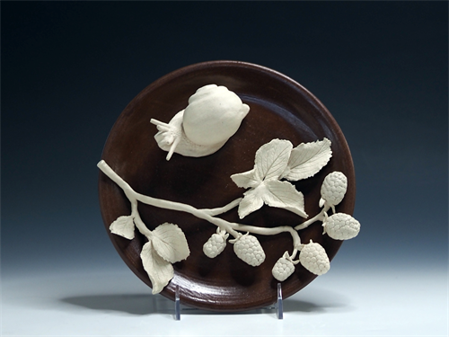 | Description: | Wheel thrown plate with hand sculpted elements |