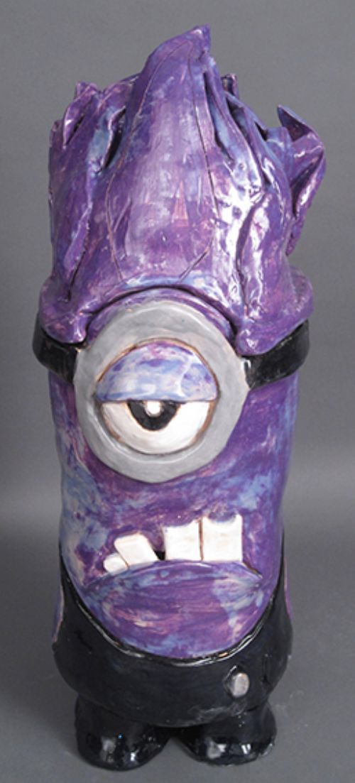 | Description: | He is an evil villain. The design is quite interesting. Hand built additive pinch, under & over glazes, jar form. Earthenware fired. |