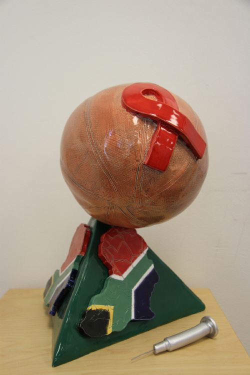 | Description: | Sculptural piece on the Aid Virus, originating in Africa Stoneware, glazes |