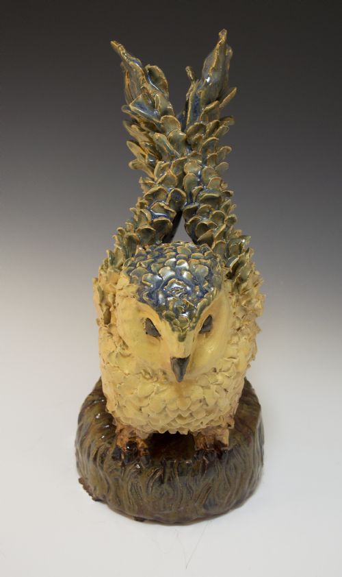 | Description: | Handbuilt barn owl sculpture based on student sketches and real life observations. Sprayed and painted application of glaze. White Stoneware fired to cone 6. |
