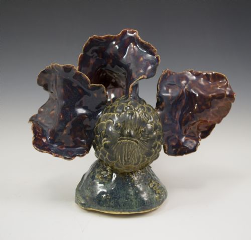 | Description: | This sculpture is based off of a pet goldfish. The student hand built the form, hollowed it, and attached the flowing fins to create movement. The student used painted and sprayed application of glazes to create the multiple colors. White stoneware fired to cone 6. |