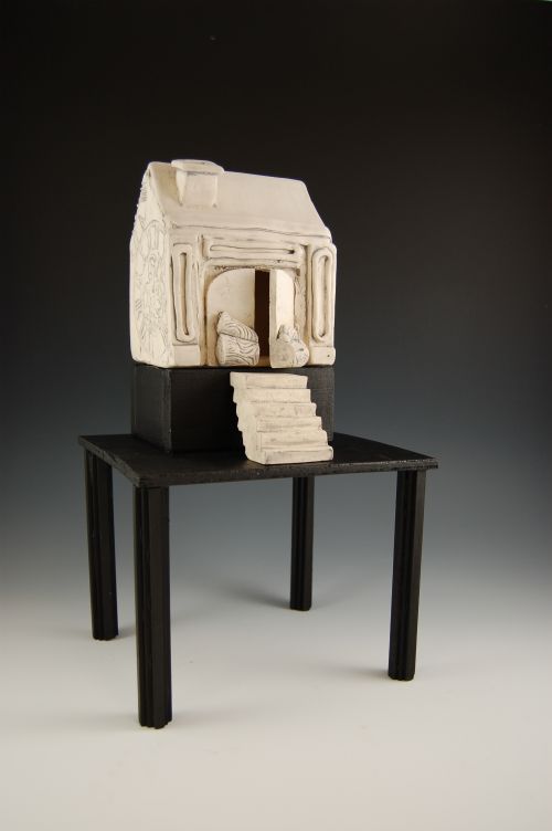 | Description: | Low fire white earthenware, handbuilt, slipped, underglazed, on wood stand |