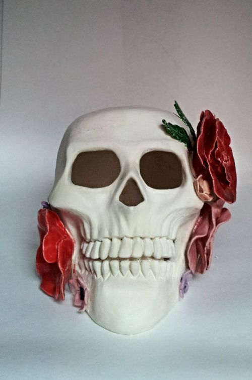 | Description: | Hand built skull using earthenware and low fire glazes |