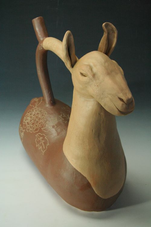 | Description: | drape-molded and hand built Mochica llama vessel with inscription |