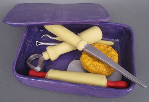 | Description: | I was inspired to make my box of clay tools after seeing pictures of Silvia Hyman’s work. I decided to make my clay tools because I thought it was different. Making this piece was very challenging but also very fun! Hand created slab & pinch, under and over glazes, stoneware, earthenware, paint |