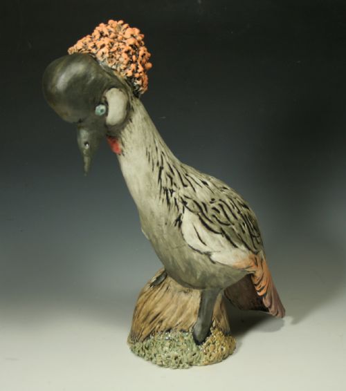 | Description: | Wheel thrown and altered sections, with sculpted additions to form a bird sculpture. Underglaze with glazes and fired to ^10 ox. |