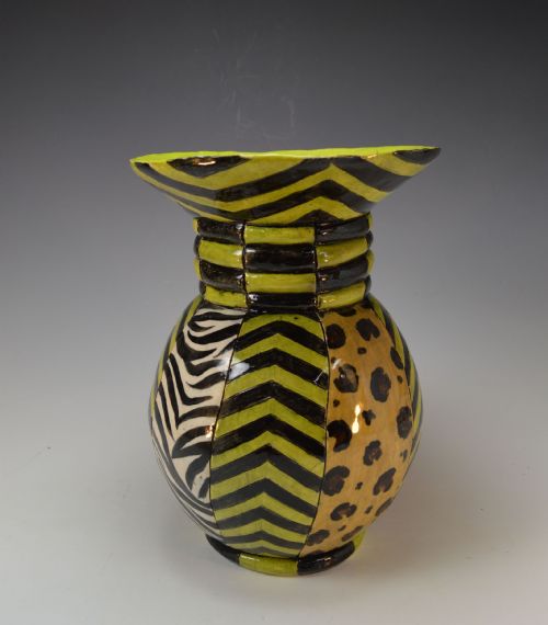 | Description: | Hand built vase with hand painted underglazes and Mishima technique. |