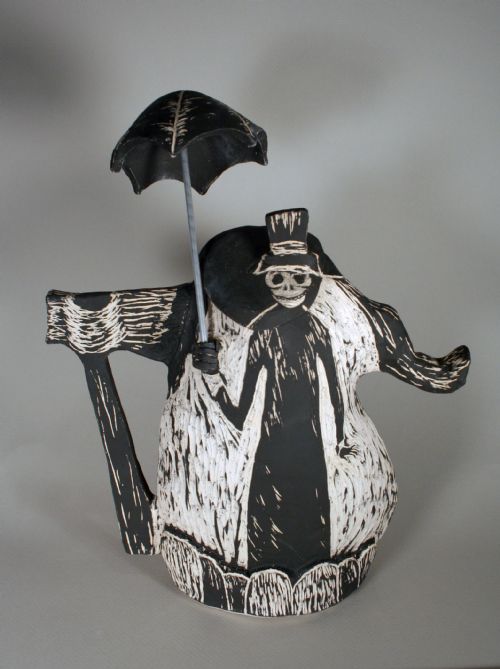 | Description: | Slab built white stoneware with under glaze,sgrafitto decoration and aluminum tube Cone 06. |