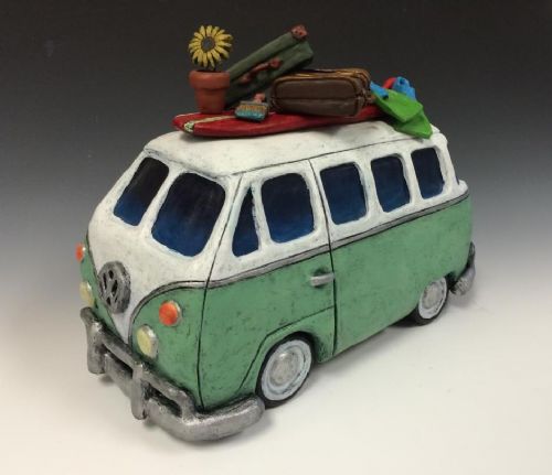 | Description: | Sculpted clay car depicting objects stacked on top to represent her and her dreams. Clay and acrylic paint |