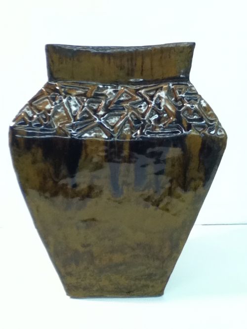 | Description: | What makes this vase unique is it's three sided construction, as well as it's three tiers. The bottom tier is composed of angled flat sides. The middle has an intricate design of intertwined triangles. Finished off with a triangular top. |