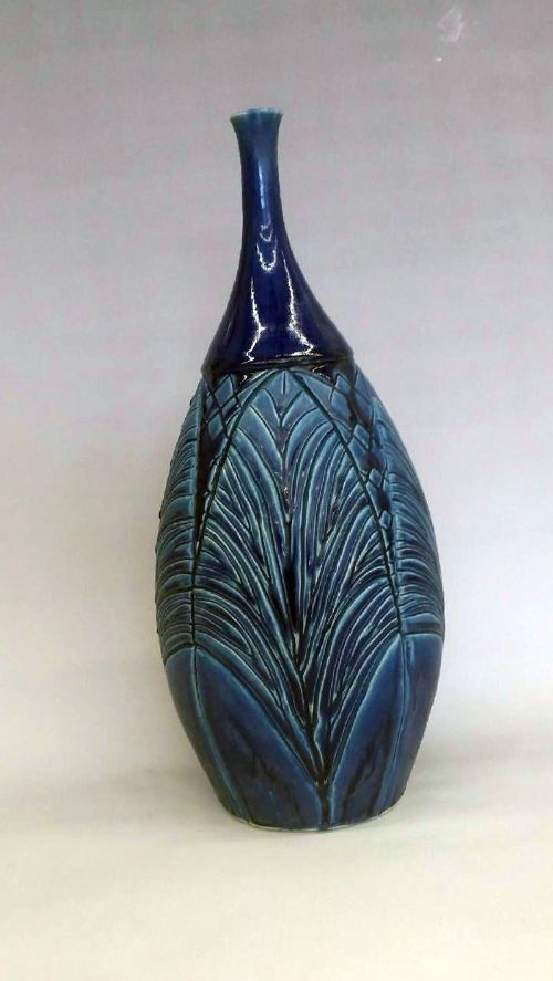 | Description: | Stoneware, wheelthrown, hand carved design |