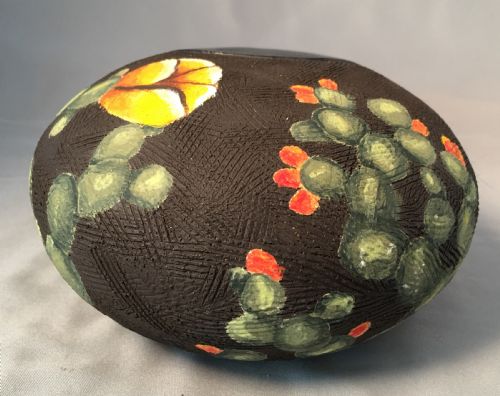 | Description: | Handbuild, underglaze painted, partially glazed |
