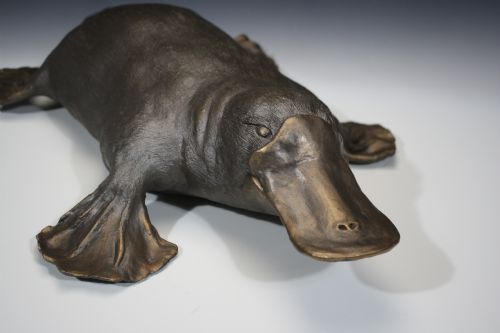| Description: | Earthenware sculpture of a platypus with faux bronze finish. |