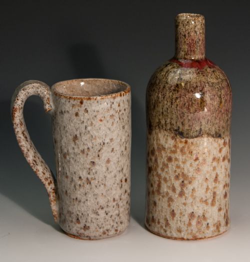 | Description: | Wheel thrown high fire stoneware. Cup and Bottle. |