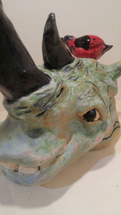 | Description: | Rhinoceros: Handbuilt with underglaze and glaze decorations. Cone 6 Oxidation |