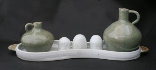 | Description: | Condiment set; stoneware fired in reduction to cone 10. |