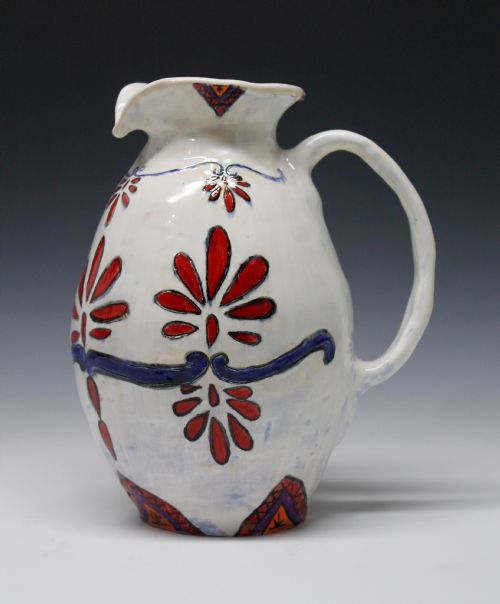 | Description: | "This past summer I had the opportunity to travel to Mexico. Right away I noticed all of the different pieces of artwork, but their ceramic work specifically stood out to me. All of the vibrant colors and different patterns inspired me to make my own version of Mexican pottery. From the start, I knew it wouldn't be an easy task. I built the pitcher out of coils, pulled a spout, and attached a pulled handle. Next, I had to plan out my surface design. Originally, I was going to do an ombre on my pitcher, but it didn't turn out as I hoped. So, I sponged off my colored underglazes and applied white instead so that I could paint a floral pattern. The name of this piece, 'Proposito con la Creacion', which is Spanish for 'Purpose with Creation' will remind me of Mexico's culture and all of their beautiful pottery." |