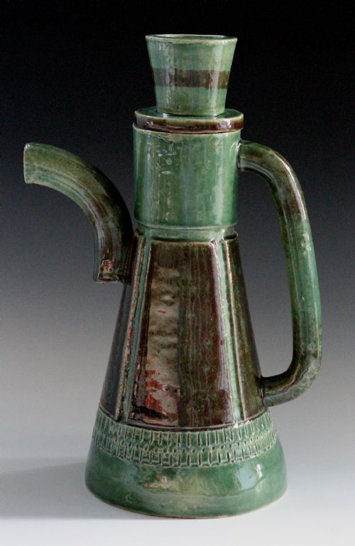 | Description: | This raku handbuilt teapot was made of slabs of clay with an extruded hollow tube as the spout and a solid extruded tube use as the body handle. |