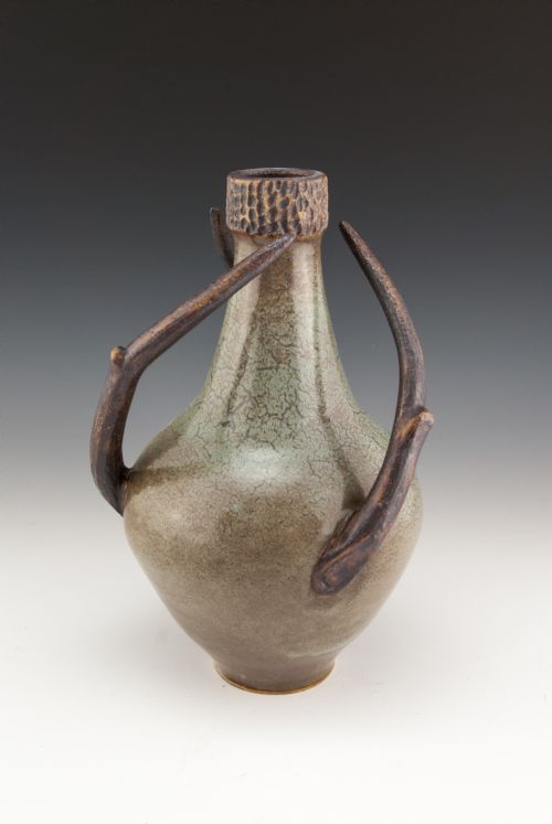 | Description: | Note: This is from a graduated senior (June 2017), and was created after last year's deadline. Wheel-thrown bottle adorned with branch-like extensions growing up from the belly and following the form. Supports were used to during firing to ensure the extensions would not slump during high-firing. |