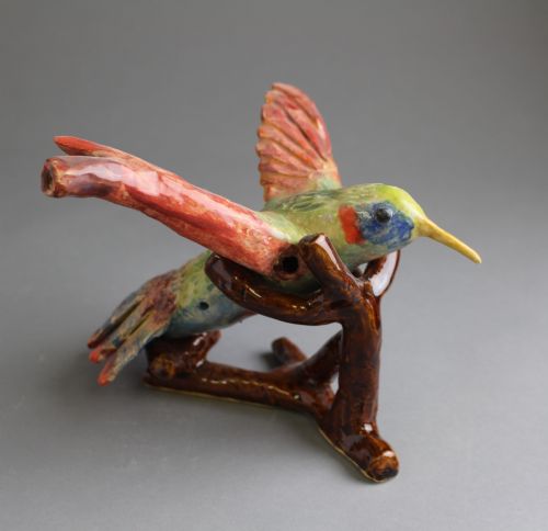 | Description: | Ocarina in the form of a hummingbird, with a separate stand in the form of tree branches |