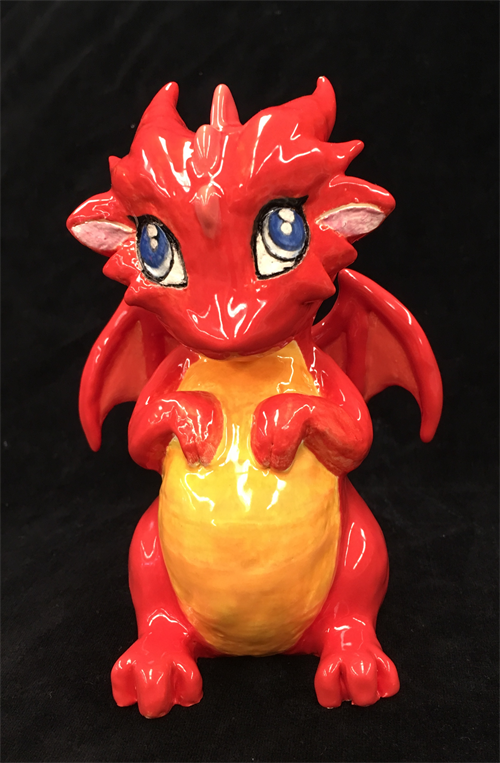 | Description: | Puja's baby dragon was lovingly sculpted and looks astounding from all angles. It is an accompanying piece with Puja's Baby Dragon Cup (also submitted). This fledgling critter has recently hatched and is looking, doe-eyed, at the new world around it. Puja glazed her baby dragon with thick even coats, precision and a great deal of care. |