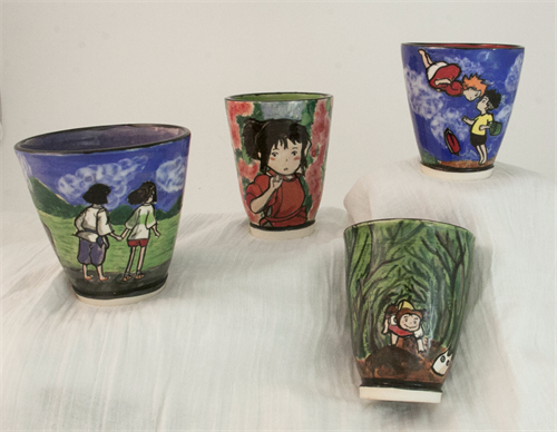 | Description: | Set of 4 B-Mix tumblers hand painted with scenes of Japanese films such as Totoro, Ponyo, and Spirited Away. |