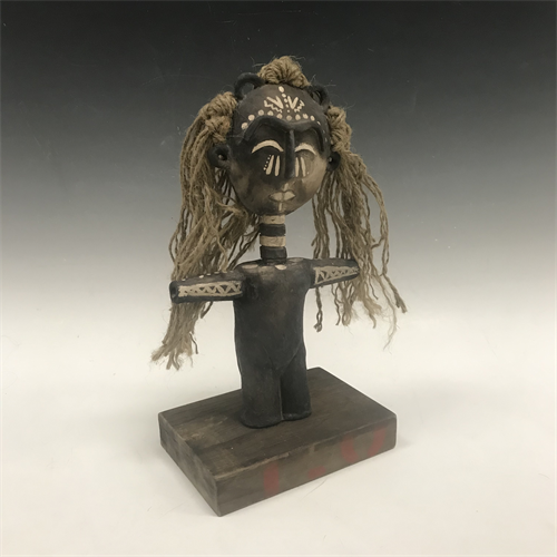 | Description: | This figurative sculpture is constructed with slabs slump over a plaster mold, altered extruded parts and coils. The surface treatment is a resist method of slip design then smoke fired. |