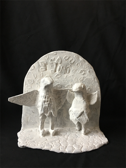 | Description: | Hand-sculpted bird figures on slab backdrop |