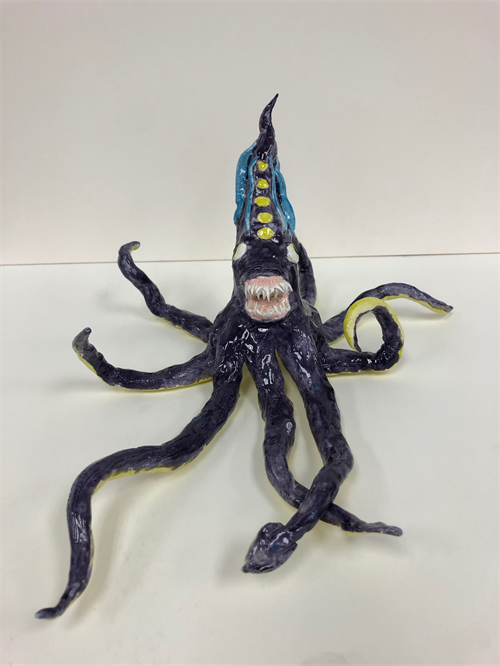 | Description: | Squid Monster, Low fire clay and glazes, hand-built |