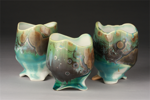 | Description: | Thrown Porcelain, wood, crystalline glazes, post-reduced, etched in oxalic acid |