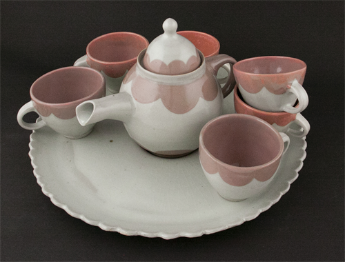 | Description: | Wheel-thrown tea set made with Cone 10 Killer B-Mix clay body from Great Lakes clay. Hand painted with Amaco underglaze. Fired to Cone 10 Reduction. |
